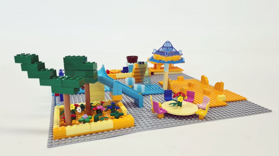 Es entstehen bespielbare Mauern, schattenspendende Konstruktionen, Labyrinthe, Höhlen und Wasserpiele.